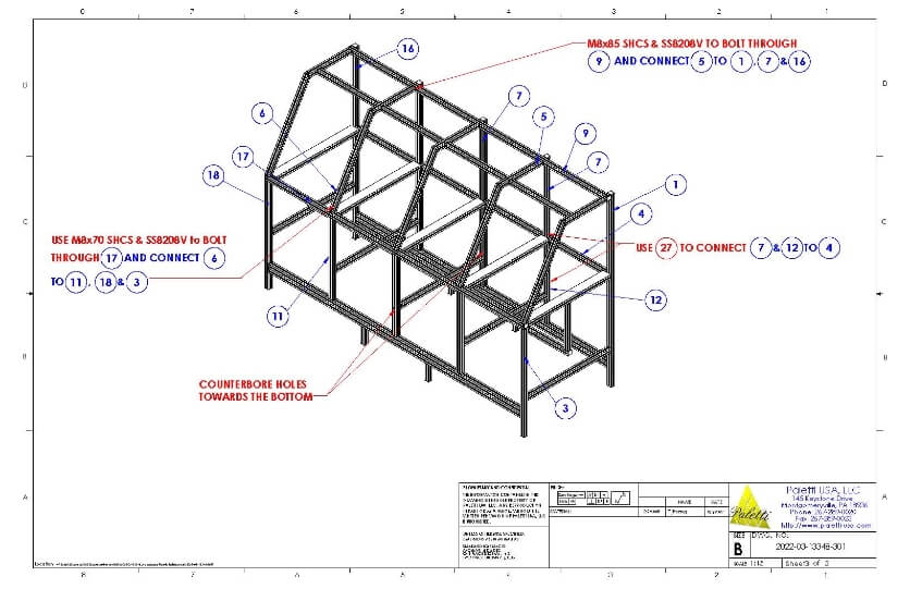 These are a few examples of how we deliver to our customers. The large palleted frame assembly shown below will ship via dedicated truck. The second image below is an example of how we package our “ready-to-assemble” Kits, and finally an example of our assembly instructions with all the parts numbered and called out.The large palleted frame assembly shown to the right will ship via dedicated truck. To the left below is an example of how we package our “ready-to-assemble” Kits, and then an example of our assembly instructions with all the parts numbered and called out shown below right.