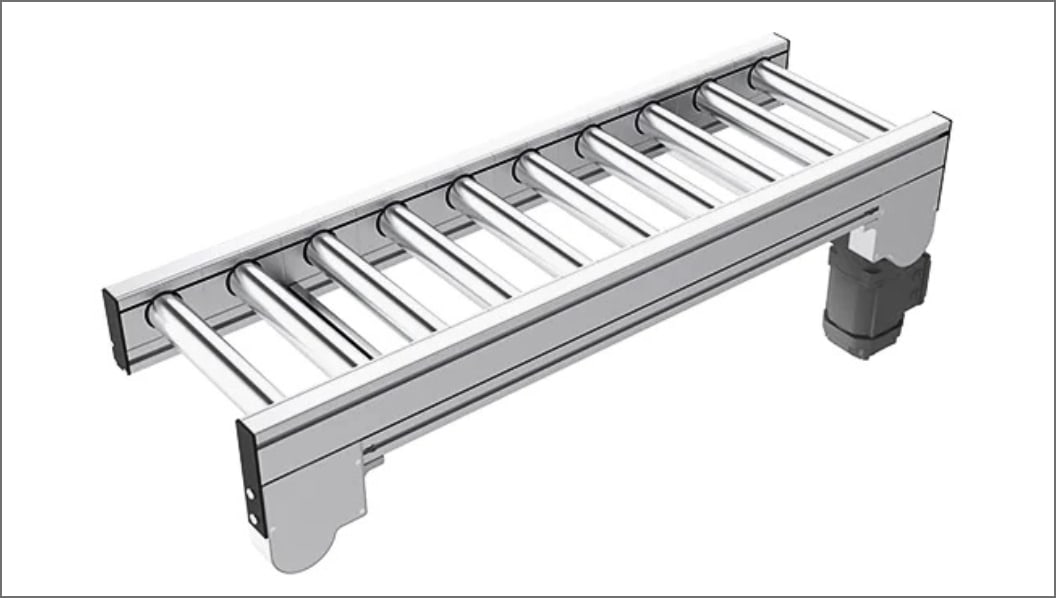An example of one of our motorized toothed timing belt conveyor systems with mounting structure.