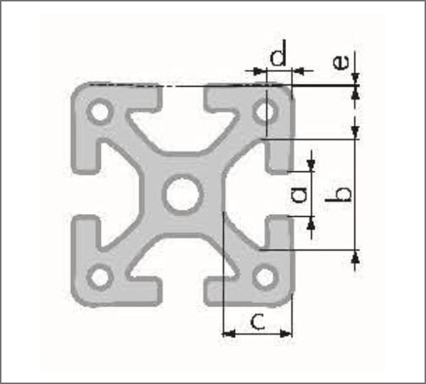 The center-hole bore of the T-Slot framing profiles can be opened up according to the table. Profiles of the series superlight (40 mm) and midi (30 mm), however, may not be opened up due to the wall section around the center hole.