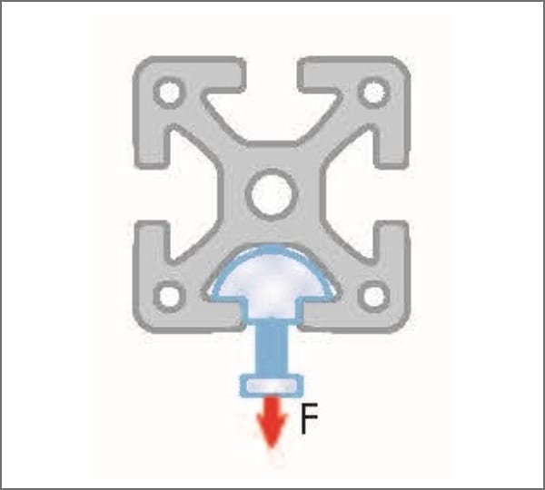 Information in regards to the maximum allowable t-slot load capability F. These values already contain a safety factor (S > 2) against plastic deformation.