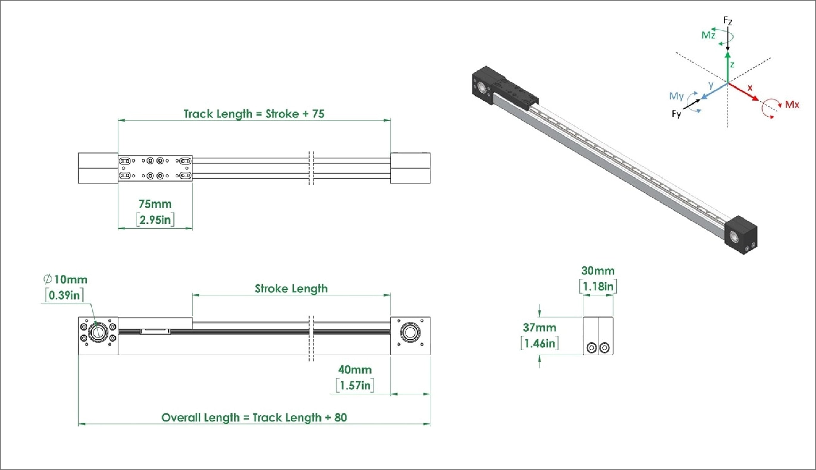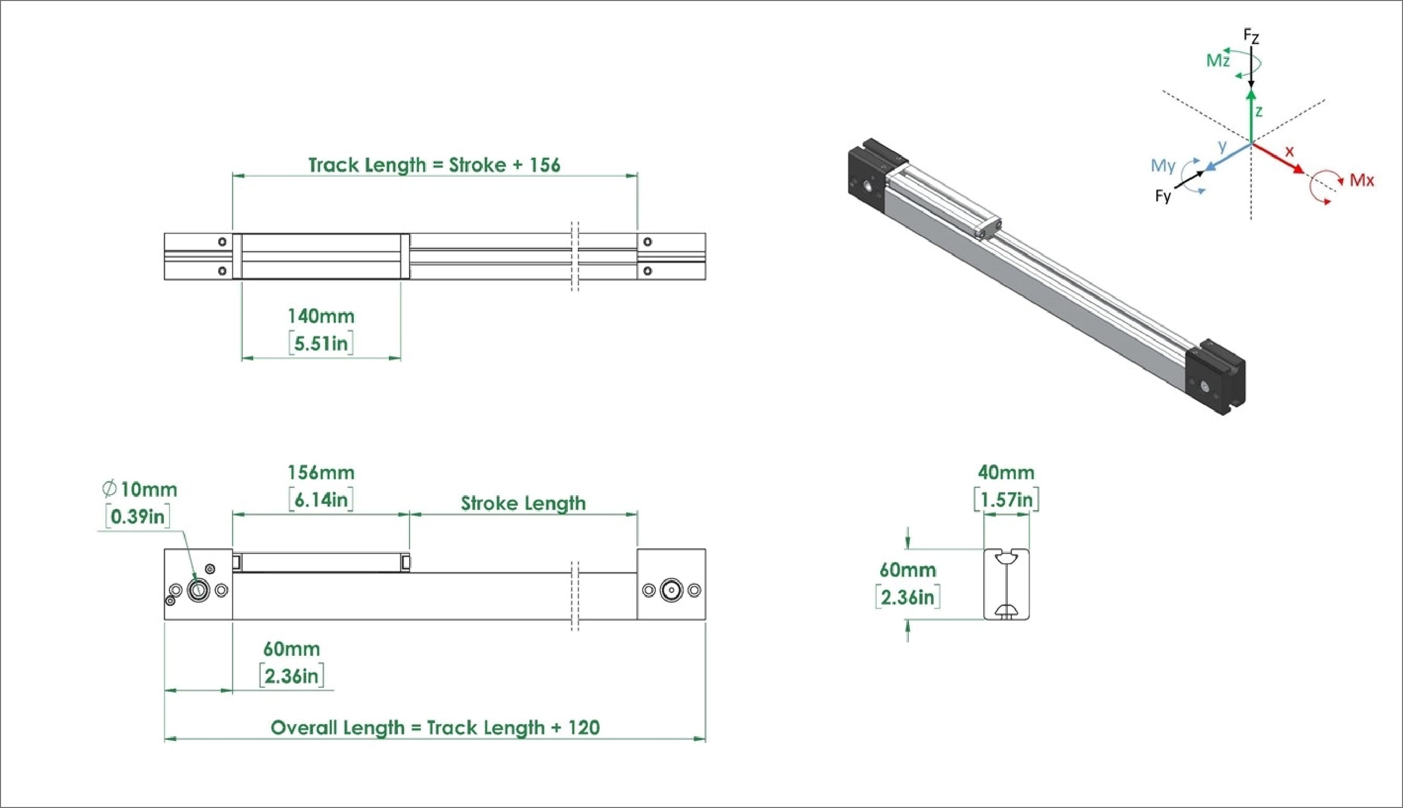 10Lbs / 45N Capacity Belt Driven Slide Actuator – Upright Carriage Configuration