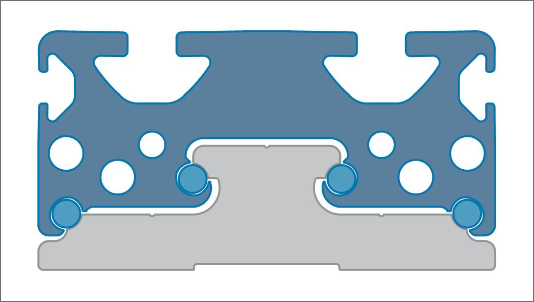- C-Track-roller guides feature special POM rollers which are internally tensioned