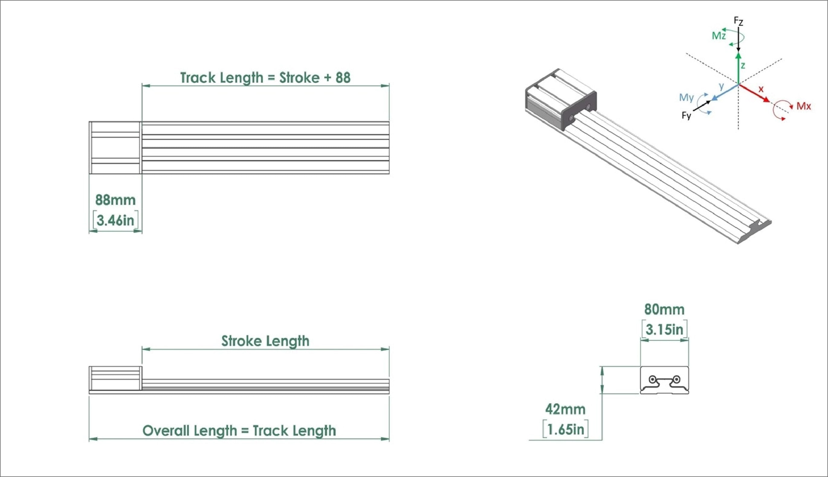 - Carriages and/or slide rails come with 8mm T-Slot mounting functionality