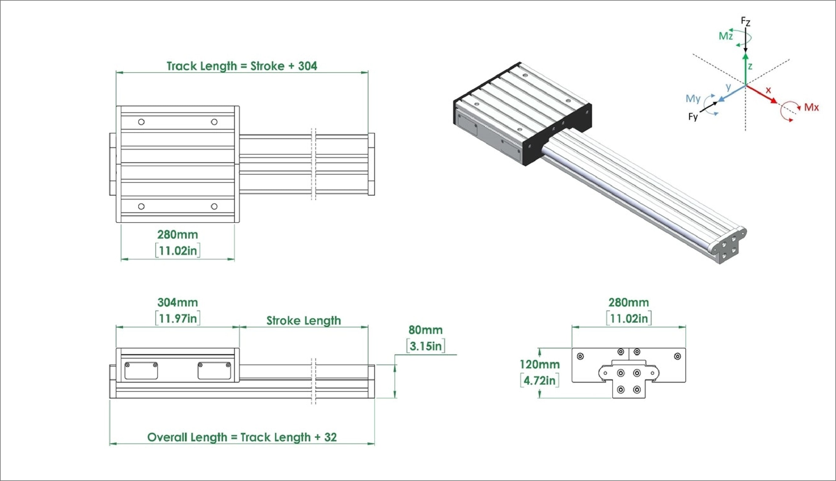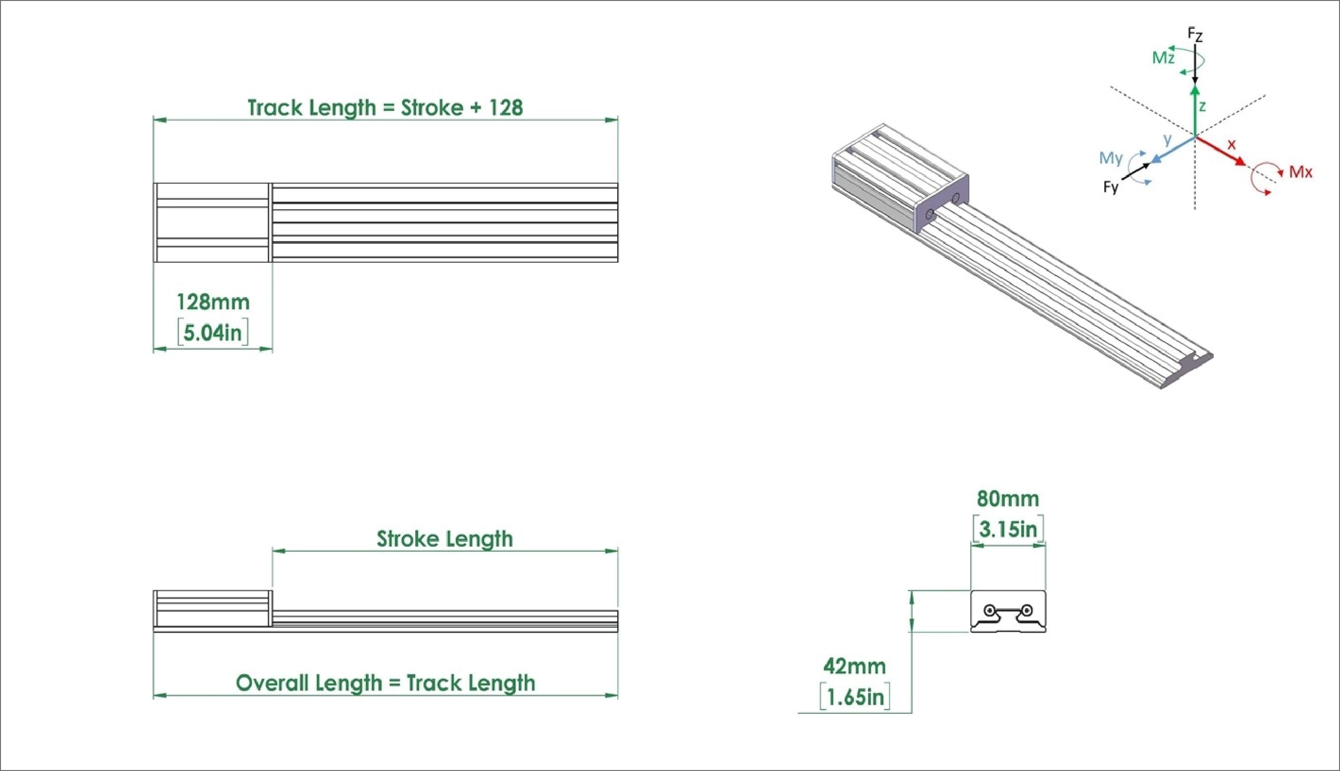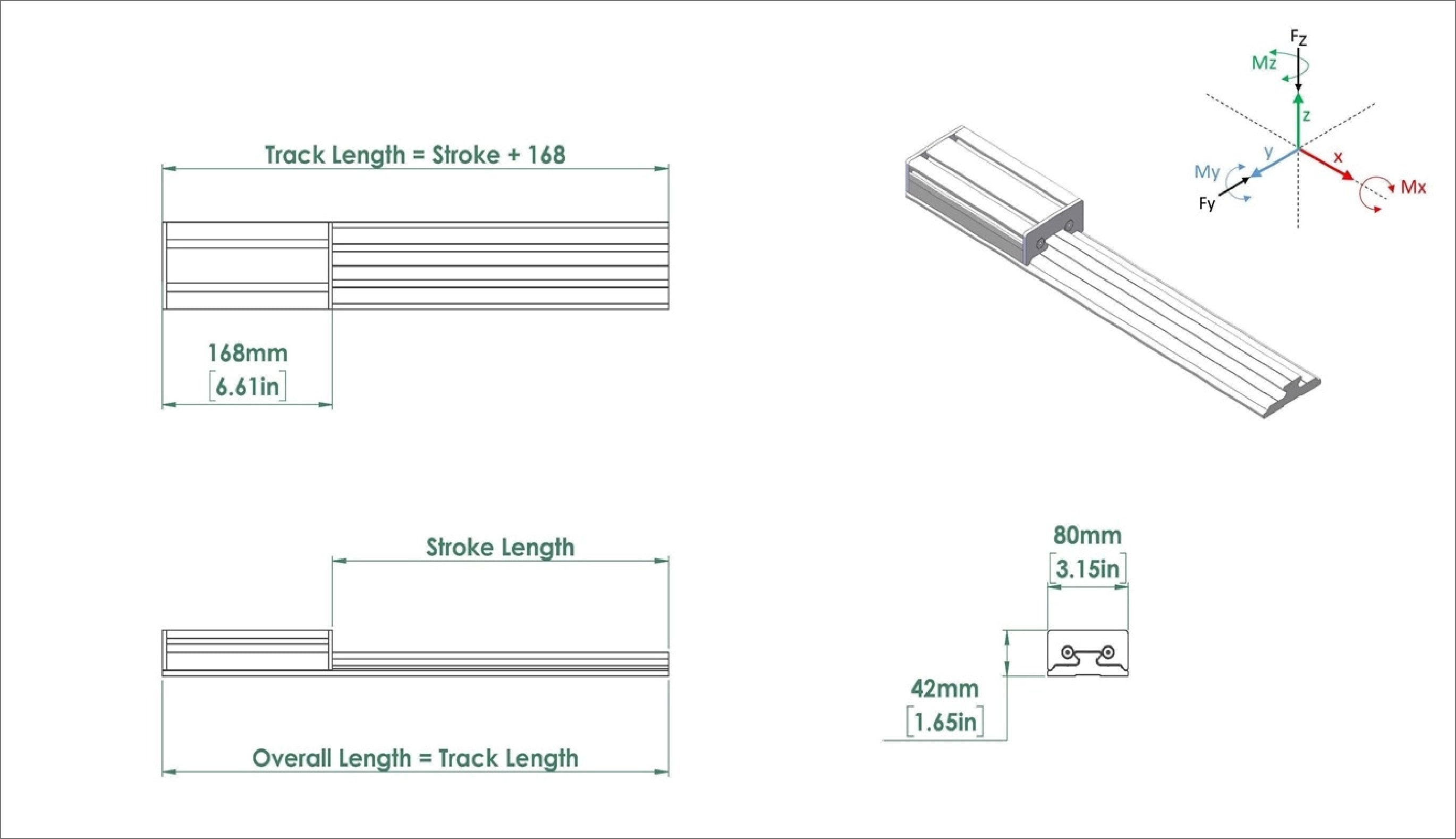 Model | Carriage Configuration | Dynamic Load (Lb/N) | Max Static Load (Fz)(Lb/N) | Max Static Load (Fy)(Lb/N) | Max Speed* |