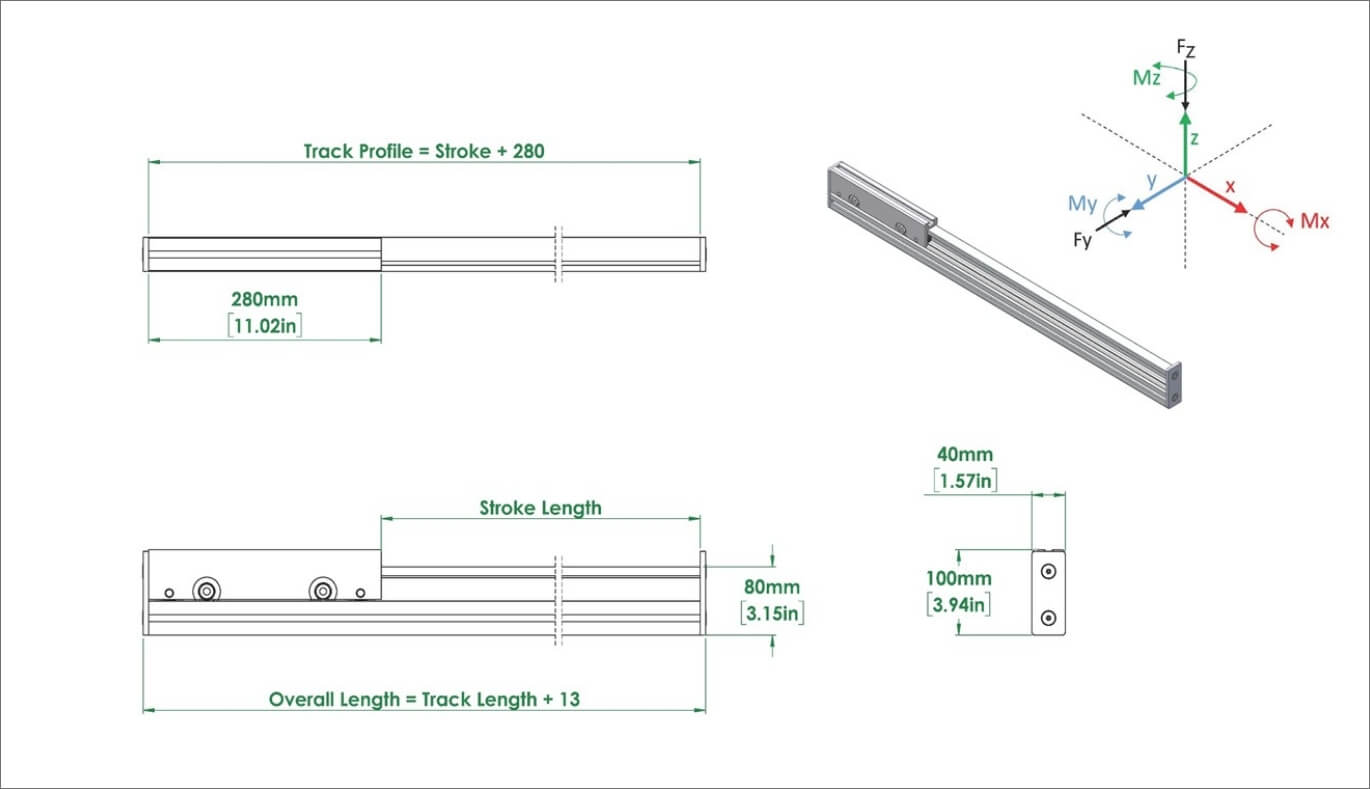 40 Lbs / 180 N Capacity, Linear Slider Guide