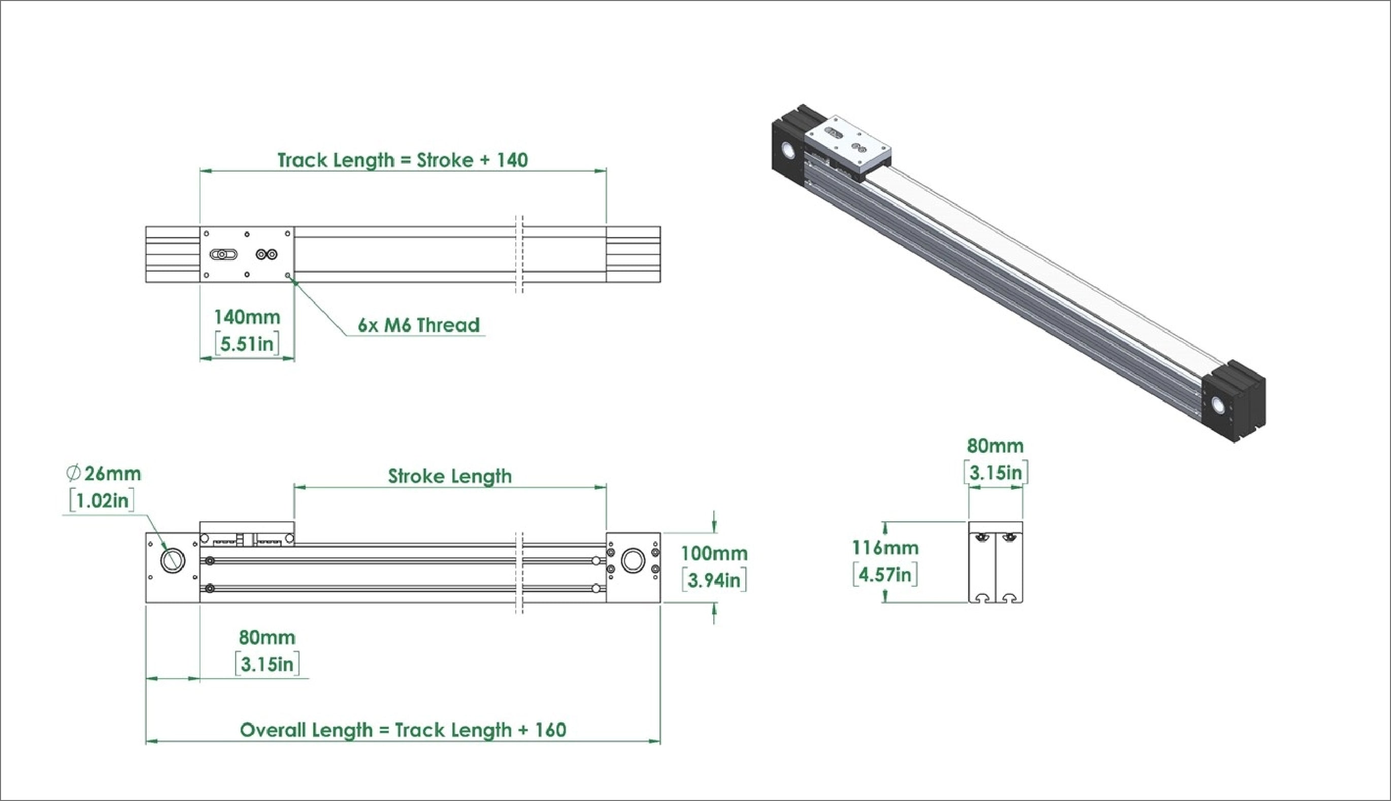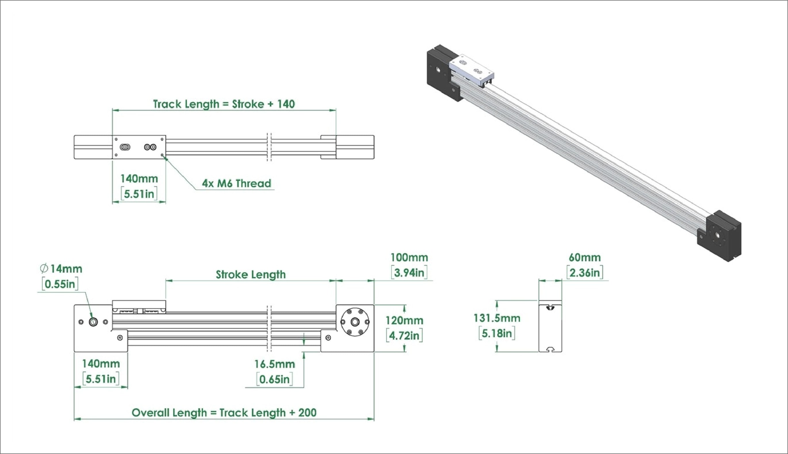 531In-Lb / 60Nm Torque Rated, Belt Driven Pusher Actuator