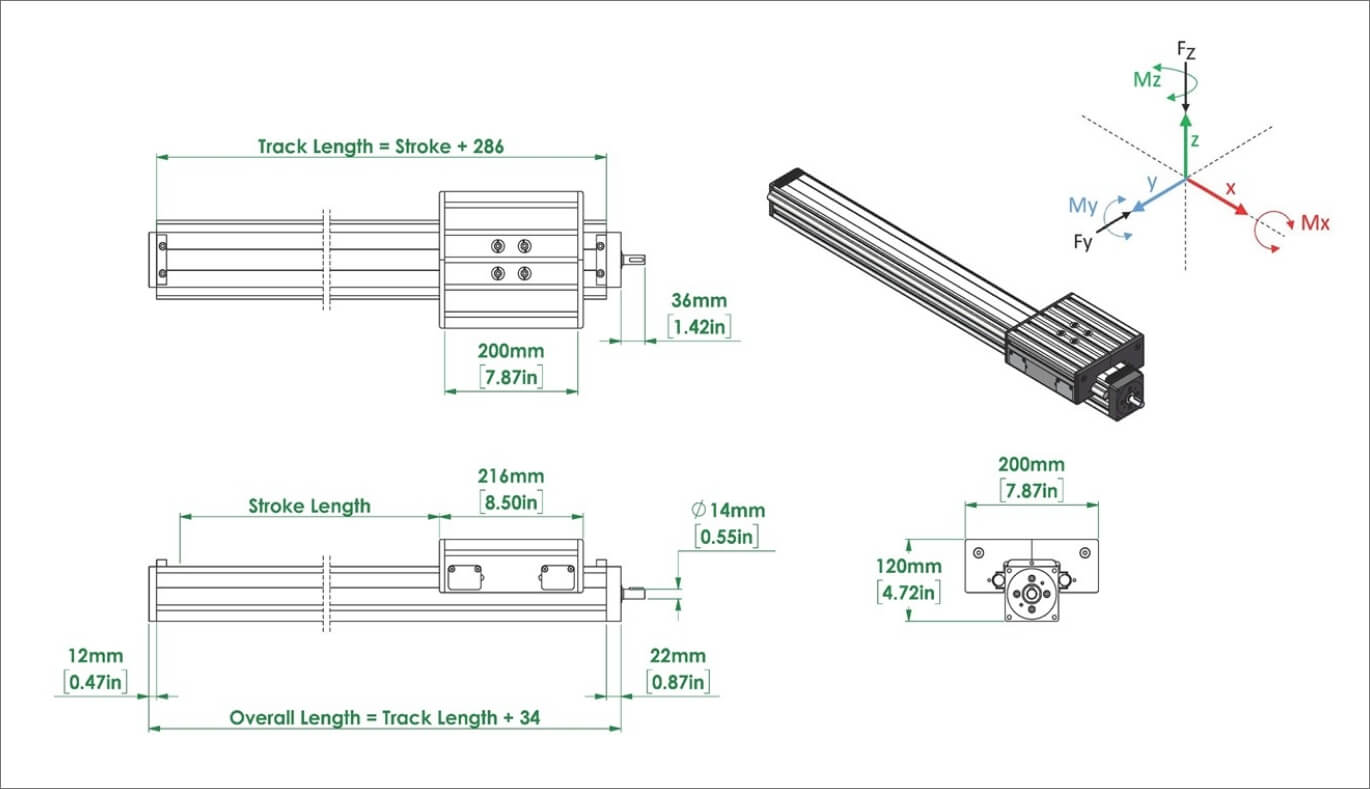 350Lbs / 1555N Capacity, Self-Locking Trapezoid Screw Driven, Roller-Slide Actuator